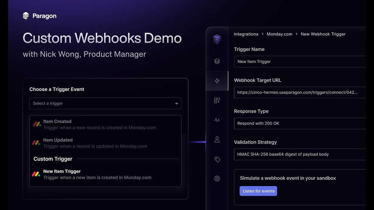 If you're new to Paragon, we'd love to walk you through the platform and Custom Webhooks within the context of your integration roadmap! You can find some time for a personalized demo here.