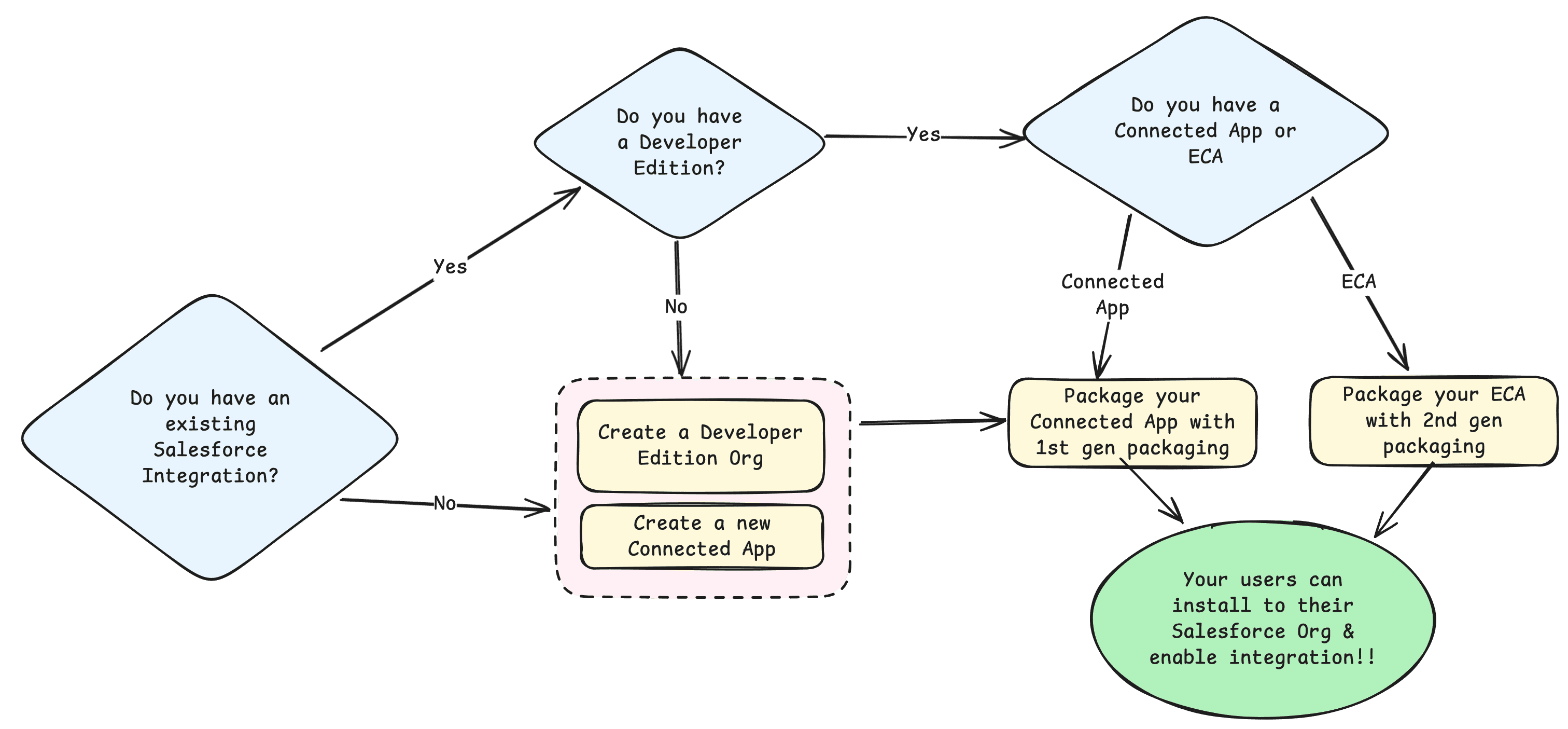 If you’re building your first integration, read the section on What to know for building a new Salesforce integration