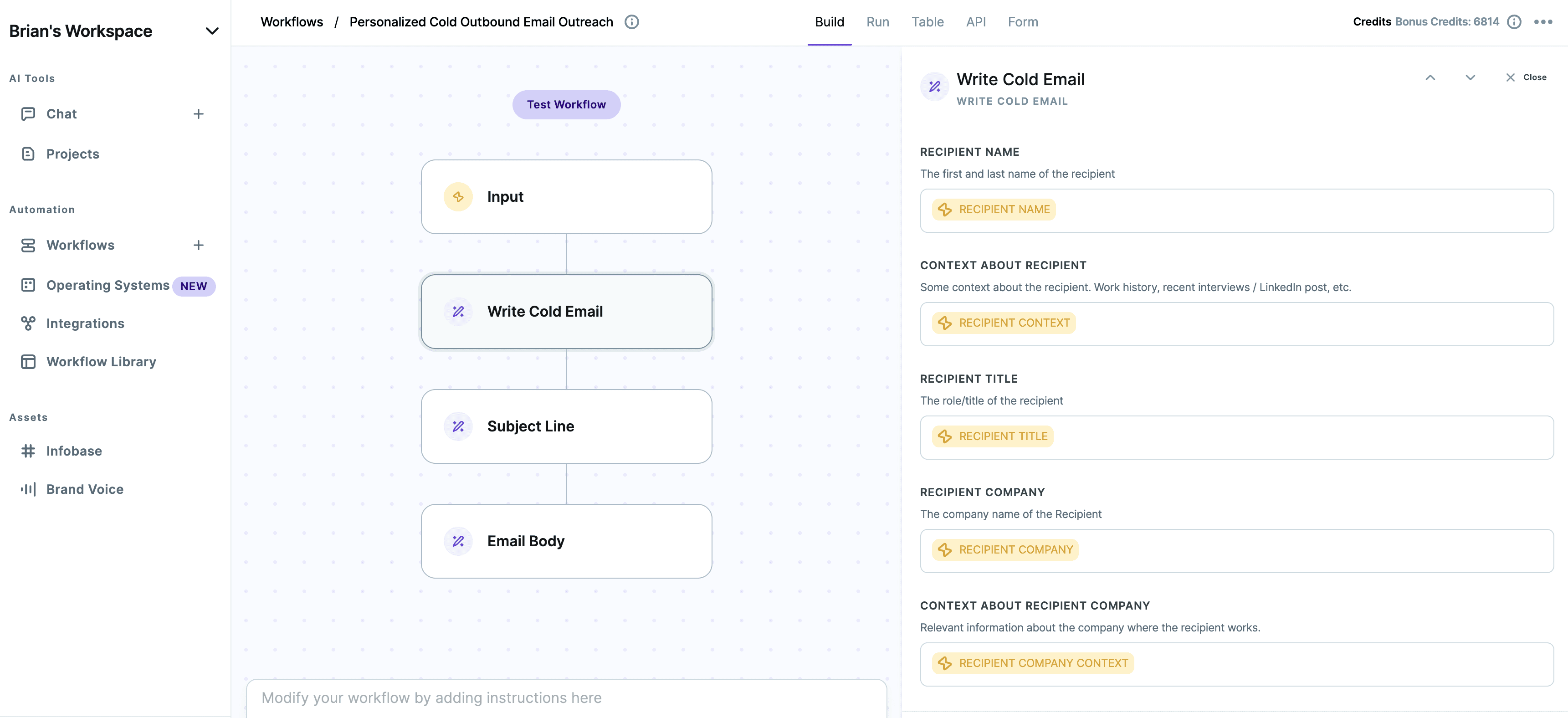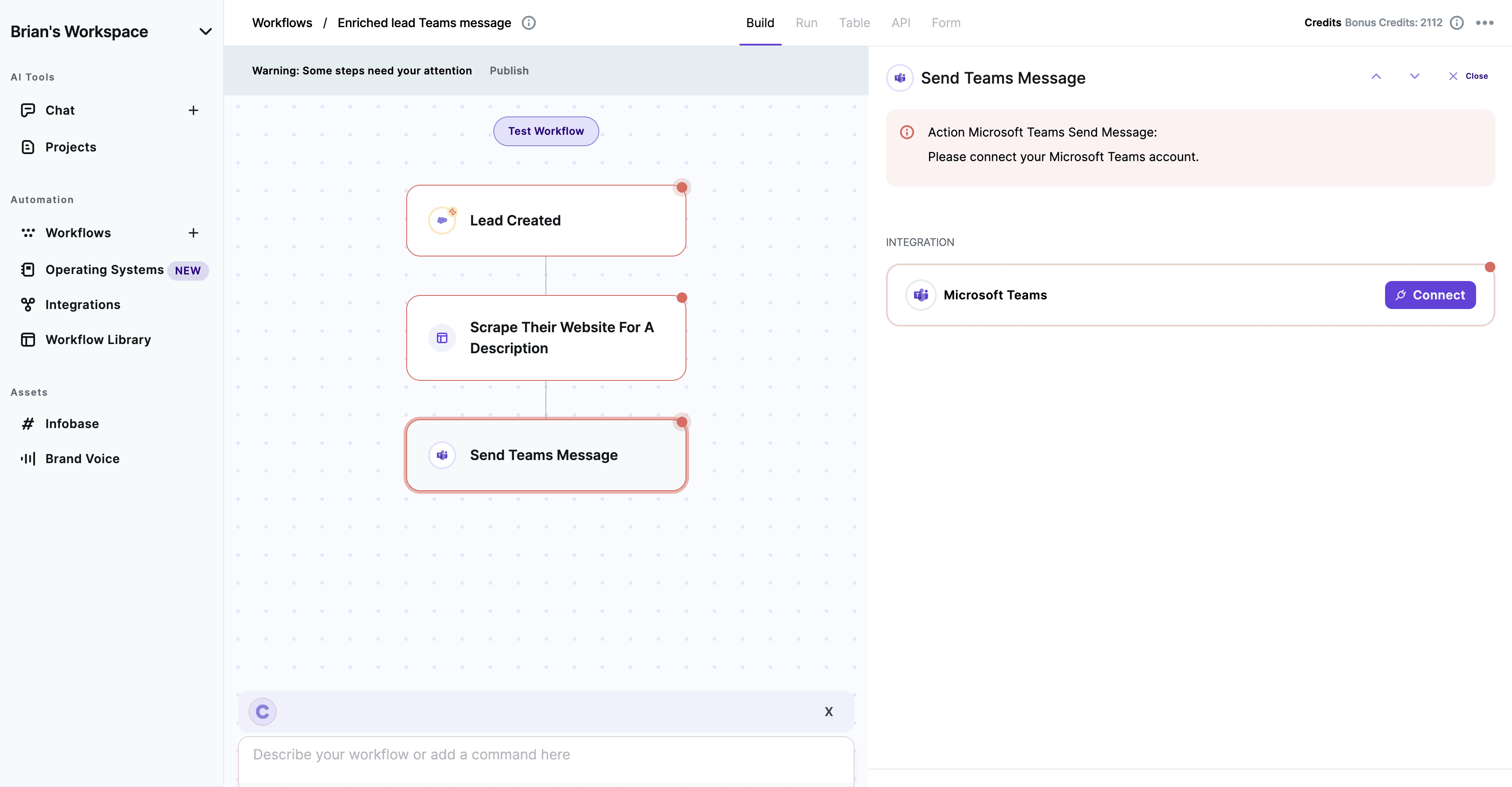 Copy.ai has the most original implementation of Paragon we've seen to date. Within Copy.ai's workflow product, users can connect to their CRMs to perform tasks such as AI lead and company enrichment or push in AI-generated sales emails and even trigger notifications that go into Slack or Teams.