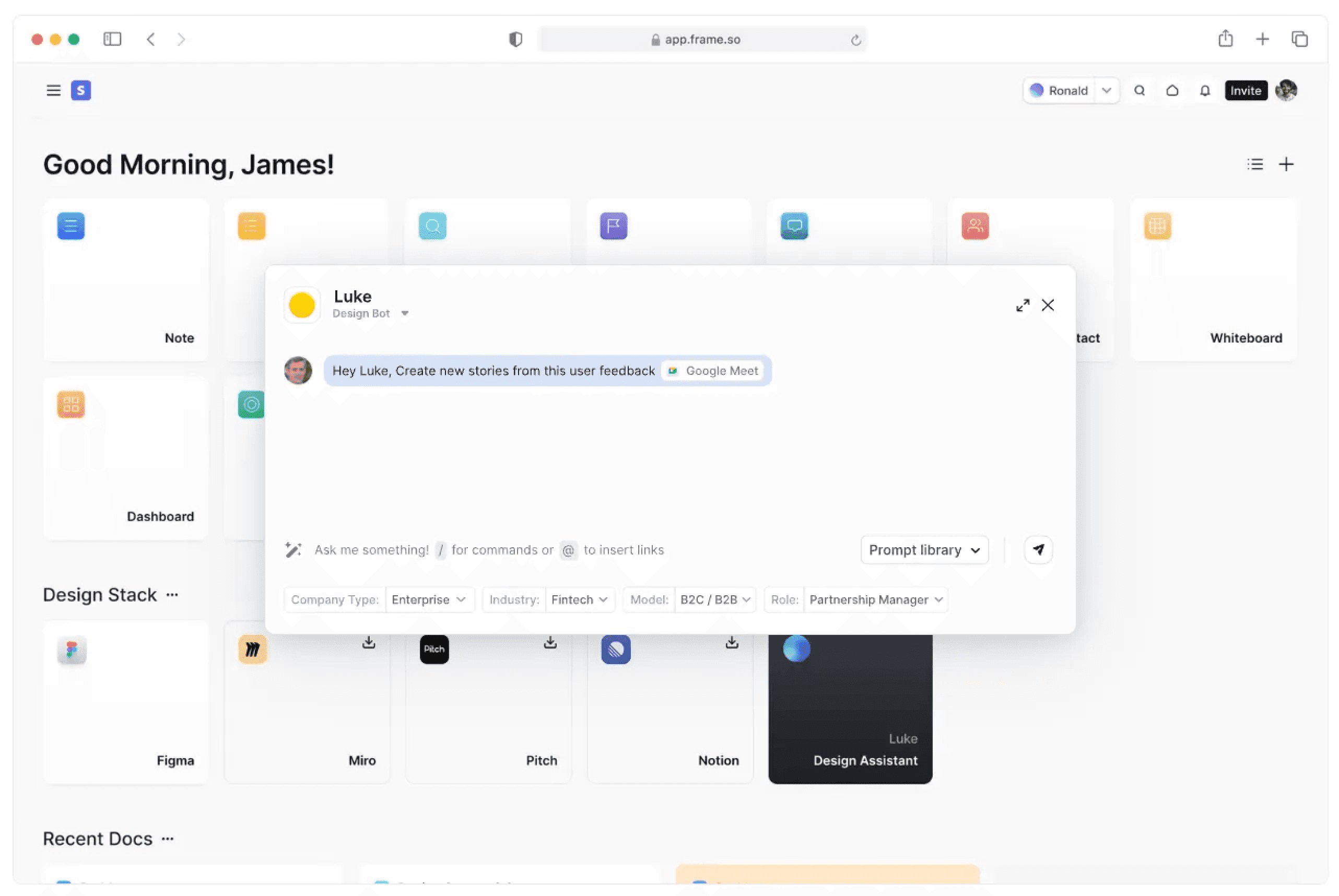These integrations lower the barrier to entry, and unlock the opportunity to eventually migrate Frame's users’ data into their own platform so Frame can become the all-in-one platform for work.