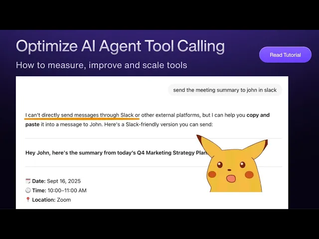This universal experience (aka frustration) we’ve all had building and using AI agents naturally leads us down the path of improving tool calling.