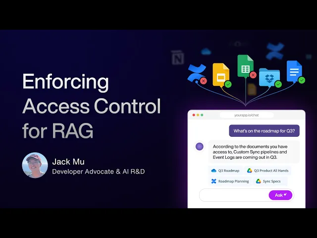 Most AI products hit a wall when moving from demo to production: they can't safely control access to customers' sensitive company data. Your AI application might retrieve confidential HR documents for junior employees or expose private email context to the wrong team members. In this webinar, you'll learn: Why the permissions problem is so critical for production-readiness, 4 different approaches (with tradeoffs) to solve this permissions' problem, Implementing access control using ReBAC permissions graphs, Pre-retrieval vs. post-retrieval permissions checks Watch this webinar to learn the battle-tested approaches that separate production-ready AI applications from AI hackathon projects.